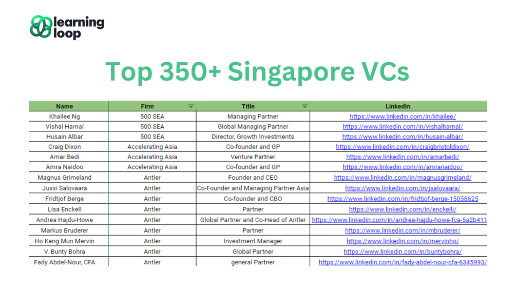This can be time-consuming, but we have made it easier for you by curating a list of over 350 Singapore-based VCs actively investing in Singapore startups.